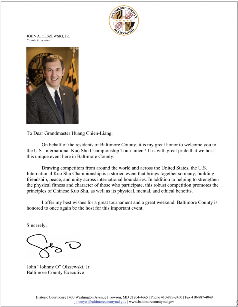 LETTER FROM BALTIMORE COUNTY EXECUTIVE