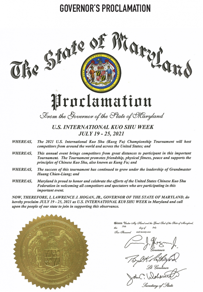 PROCLAMATION FROM THE MARYLAND GOVERNOR