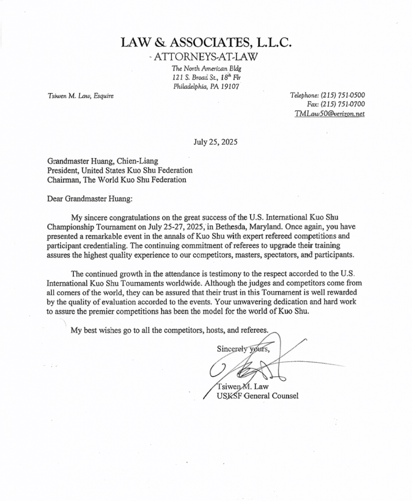 From THE USKSF GENERAL COUNSEL TSIWEN M. LAW, ESQ.